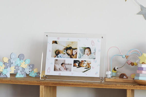 新生児期の赤ちゃんは、まさに天使。飾れるパネルにすれば、ふと目に入ったときに心が癒されます。「WALL DECOR カジュアル」の「A4 ロング」サイズでつくれば、ほぼ等身大の赤ちゃんのパネルがつくれます。