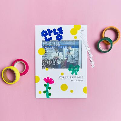 今回は写真の韓国旅行をテーマに、丸シールで文字を入れてみました。