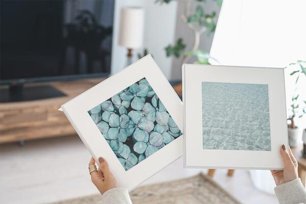 写真のサイズや、飾る位置のバランスと色味をすごく意識しました。注文する前に、飾る予定の場所の写真を撮り、実際の写真を画面上に置いて、どの位置にどの写真を飾るか念入りにシミュレーションしたんです。そのおかげで、届いた後は悩まずにイメージどおりに飾ることができました。