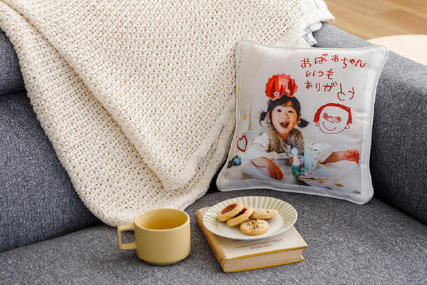 くつろぎタイムのおともにうれしいクッション。ちょっとした休憩でも、孫からのプレゼントのクッションを使えば、いつもよりリラックスできそうです。
